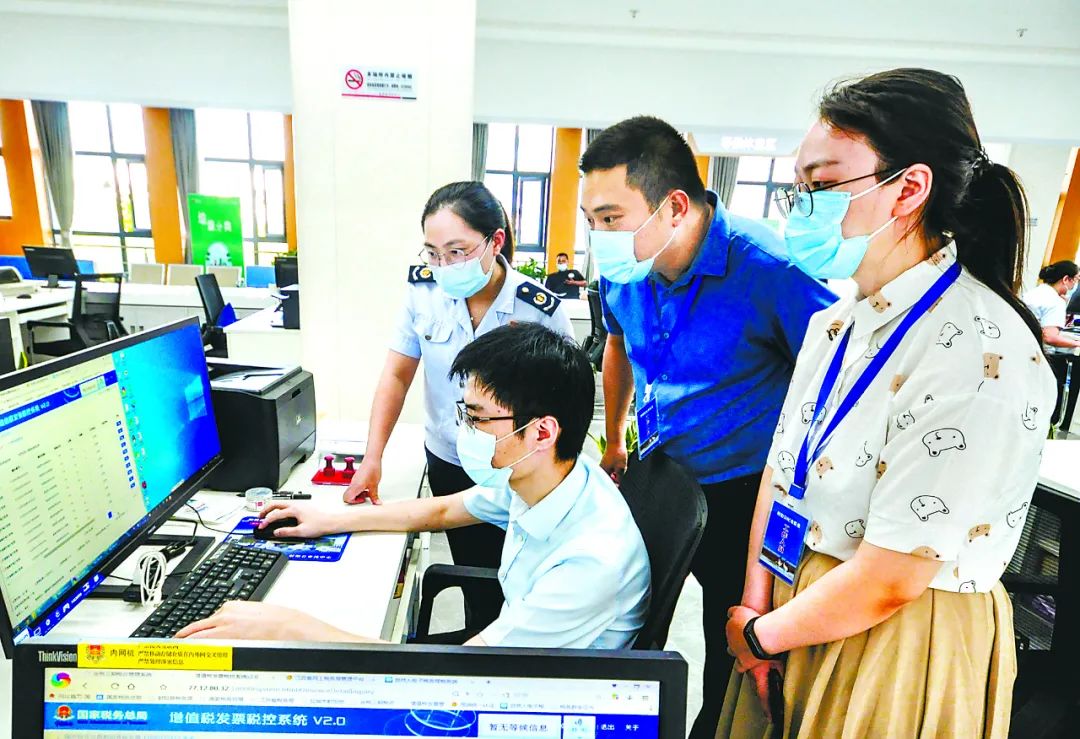 9月7日,江苏省射阳县纪检监察干部利用税票管理系统核查违规收受节礼问题线索。王万舜 摄